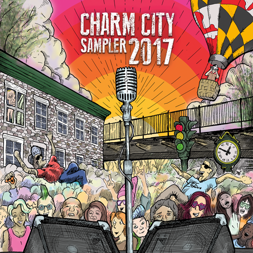 Album cover design for the 2017, 2016 and 2015 Charm City Sampler CD, an annual release showcasing some of the best rock bands in the Baltimore area. Hand drawn. Digitally Colored.